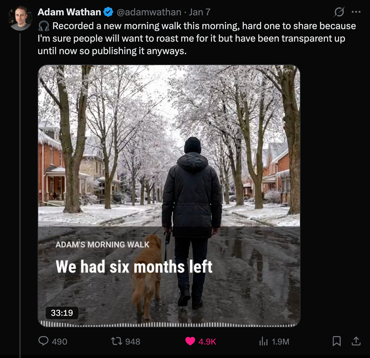 But when scrolling X I saw the audio note shared by Adam explaining the crisis they had embarked on, causing him to lay off 3 engineers. Speaking from experience, running a company is not easy—and it’s worse when you need to make hard decisions that affect the livelihoods of humans.